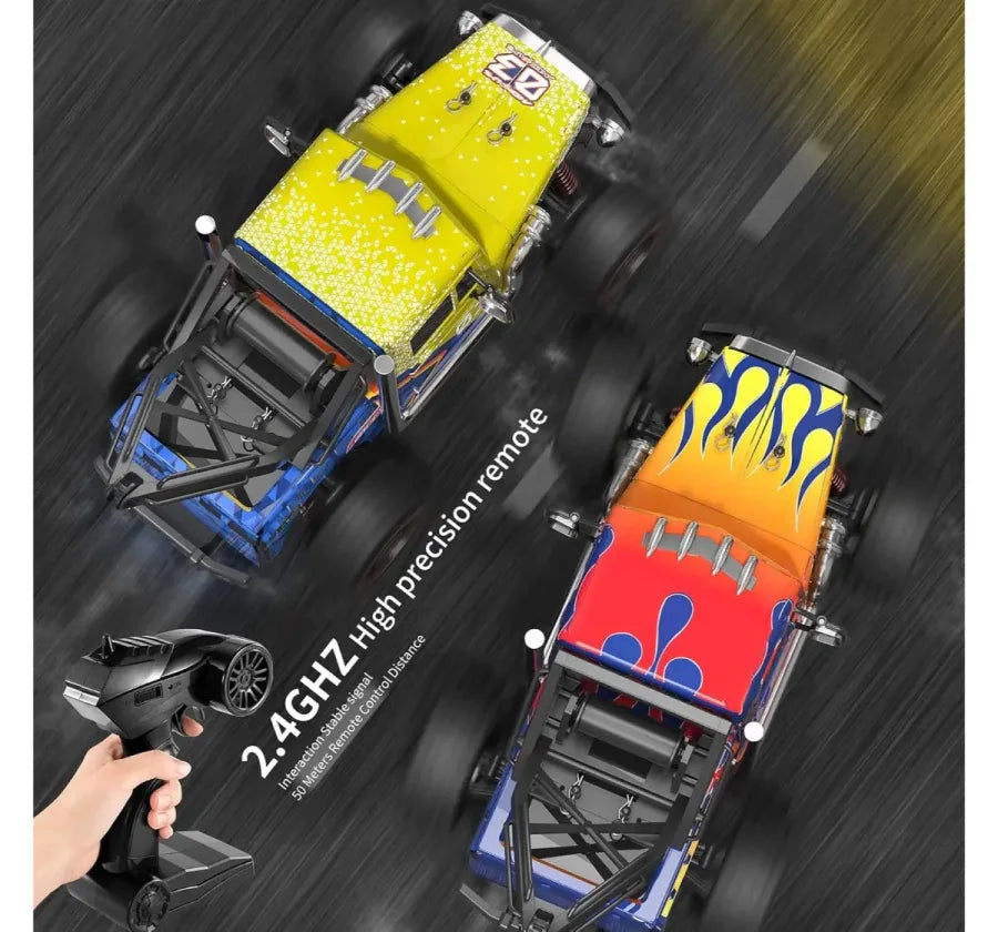2.4 GHZ remote control monster truck with a metal alloy body and remote control is a type of remote-controlled (RC) vehicle designed for off-road and rock crawling adventures. A metal alloy body is a common feature in high-quality RC monster truck. It provides durability and protection against the rigors of off-road terrain, rocks, and crashes. These RC vehicles are controlled remotely using a dedicated transmitter or remote control unit. You can use it to steer the vehicle, control its speed, and sometimes even adjust suspension settings. Rock crawling with RC vehicles is a skill-based hobby that requires finesse, patience, and an understanding of how to navigate challenging terrain. It's often enjoyed by hobbyists who like the technical aspect of driving and conquering obstacles.