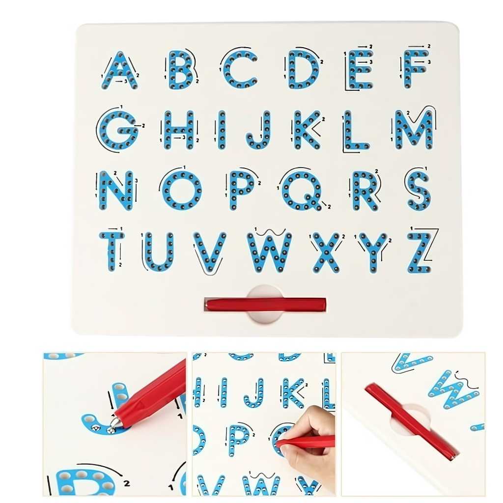 Develop fine motor skills and letter recognition with this interactive magnetic tracing board. Children trace uppercase letters with the included stylus, reinforcing proper letter formation while building confidence in early literacy. The magnetic surface keeps letters secure, and the reusable design supports repeated practice without wear. Ideal for preschoolers and early learners preparing for writing readiness. Compact and portable for learning at home or on the go.