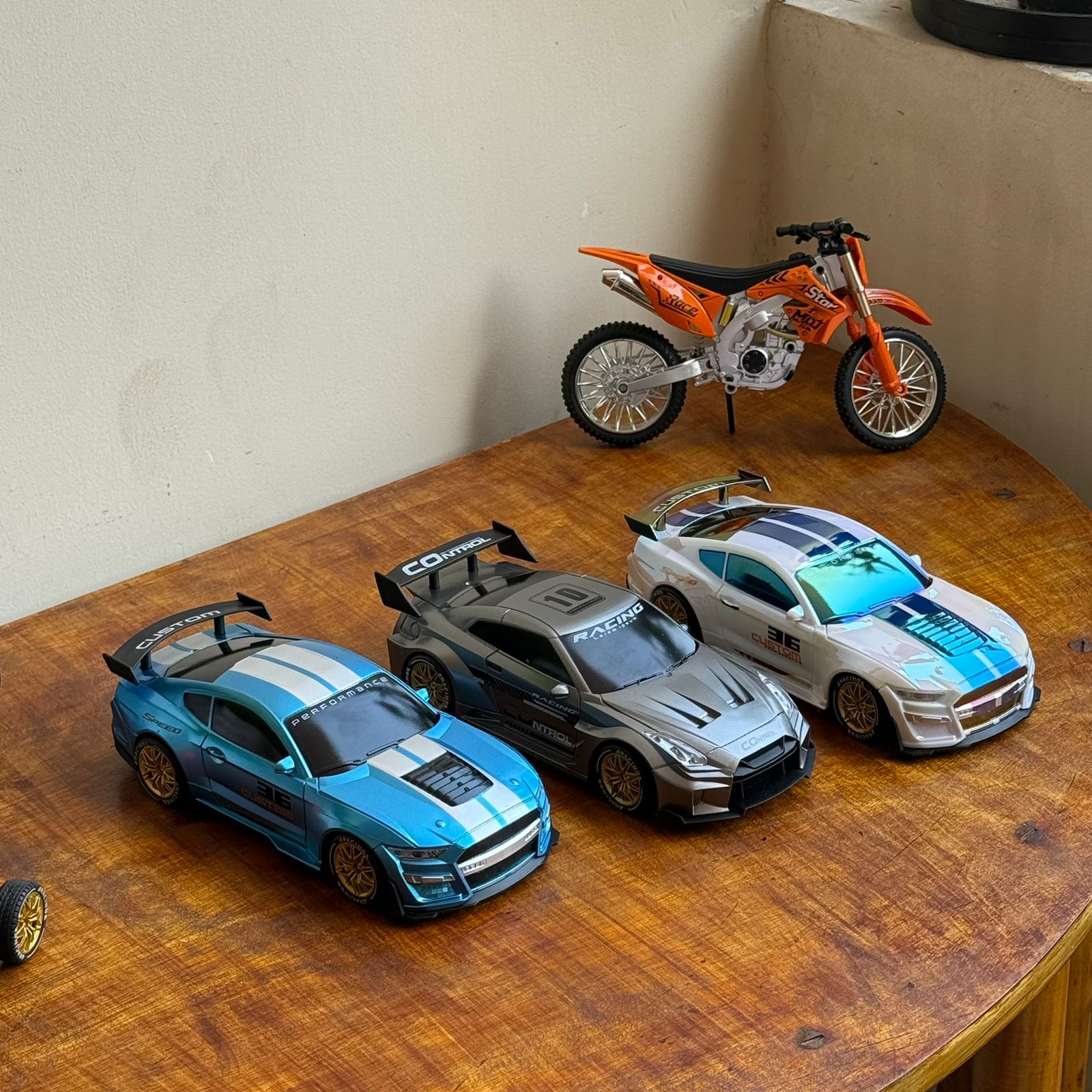 Product Description: Why choose one when you can own the fleet? Our Pro Series RC Drift Collection brings hobby-grade excitement to your home. Choose between the stealthy Gunmetal Grey, the bold Electric Blue, or the shimmering Pearl White. Each car is optimized for drifting, featuring swappable tires and precision controllers to turn any floor into a race track.