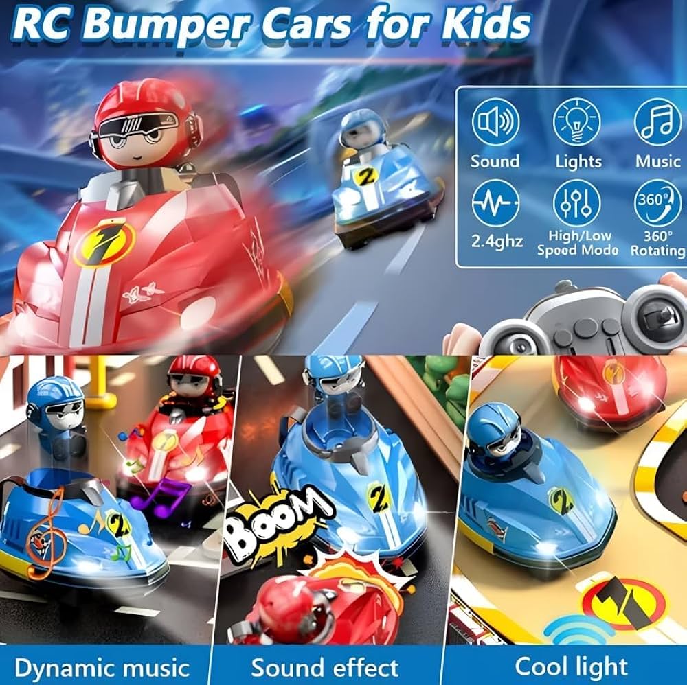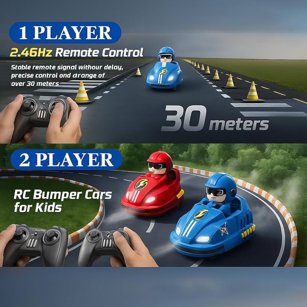 # RC Bumper Car Fight Toy – 2-Player Action Experience head-to-head remote-controlled combat with this dual-player bumper car system. Each player commands their own RC vehicle equipped with responsive steering and collision-ready durability, designed for dynamic arena battles. The intuitive controls make it accessible for younger players while delivering the competitive excitement older kids crave. Perfect for indoor or outdoor play, these bumper cars withstand repeated impacts and deliver consistent performance across multiple rounds. Ideal for developing hand-eye coordination, strategic thinking, and social play skills through engaging, screen-free entertainment.